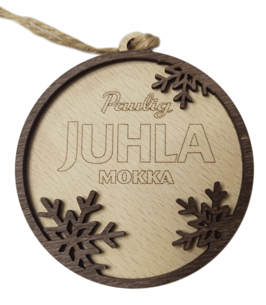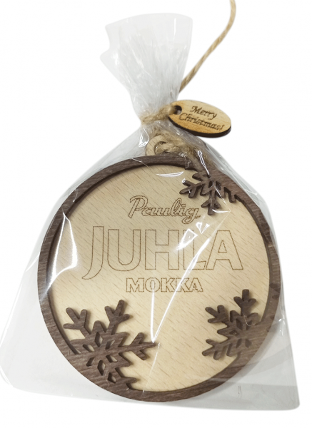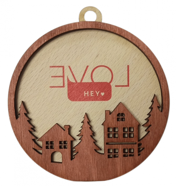 Wooden Christmas balls are made of 3mm thick plywood using laser cutting and laser engraving. Color images are printed using pad printing. This also applies to full-color images.